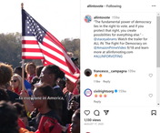 These notes were to emphasize the All in to Vote brand by enlarging and centering the logo, use patriotic colors from the brand to get people to understand these posts are about voting, have a hierarchy with the type to allow easier legibility, and speed the animations up to make them more fun and energized.